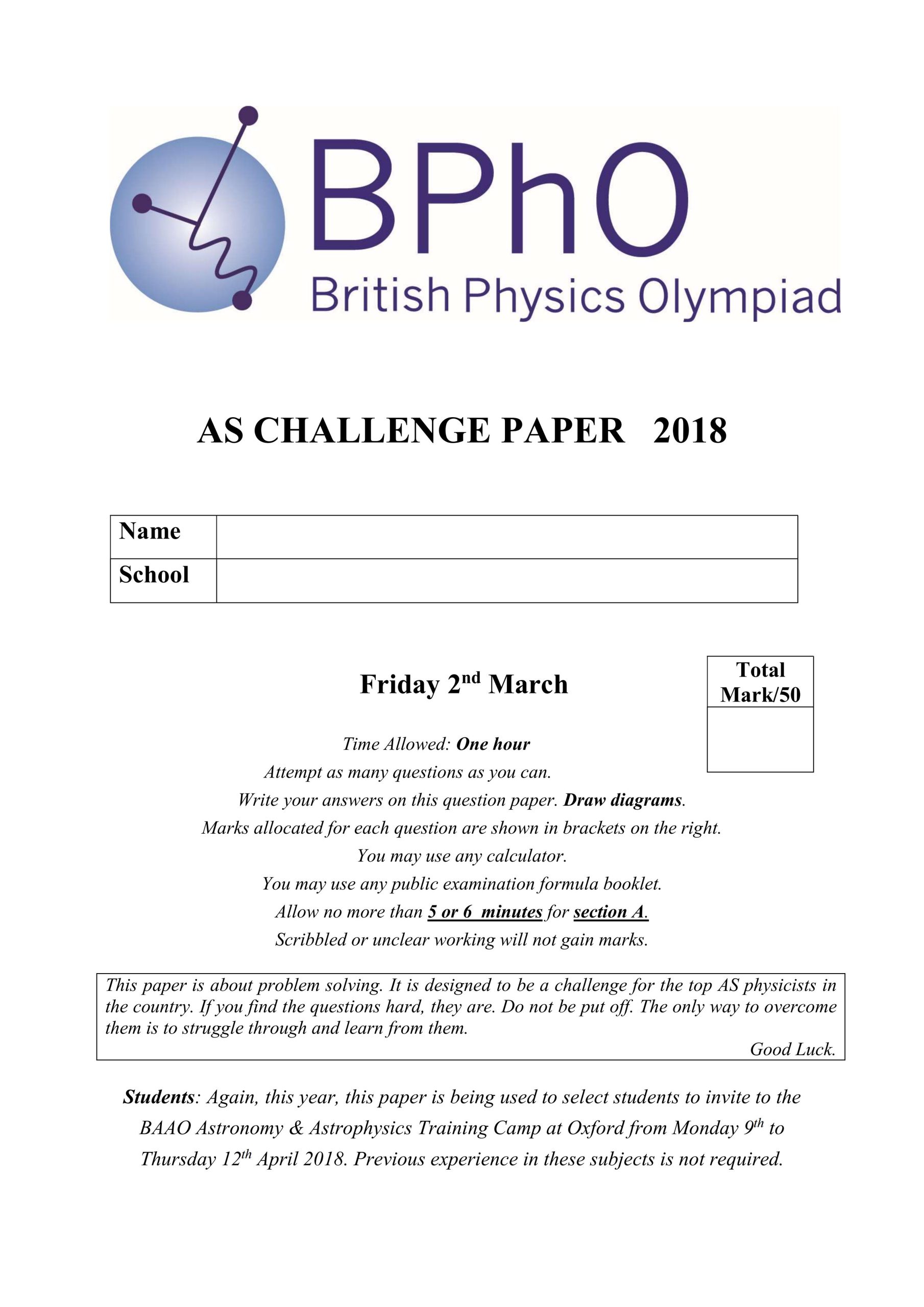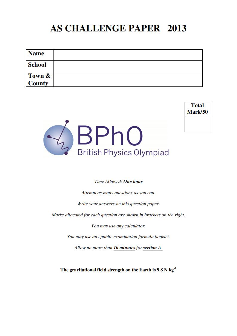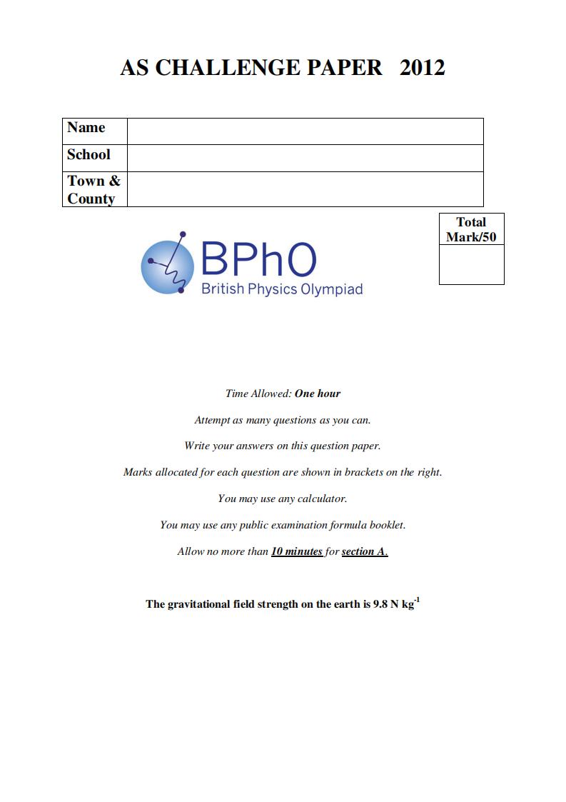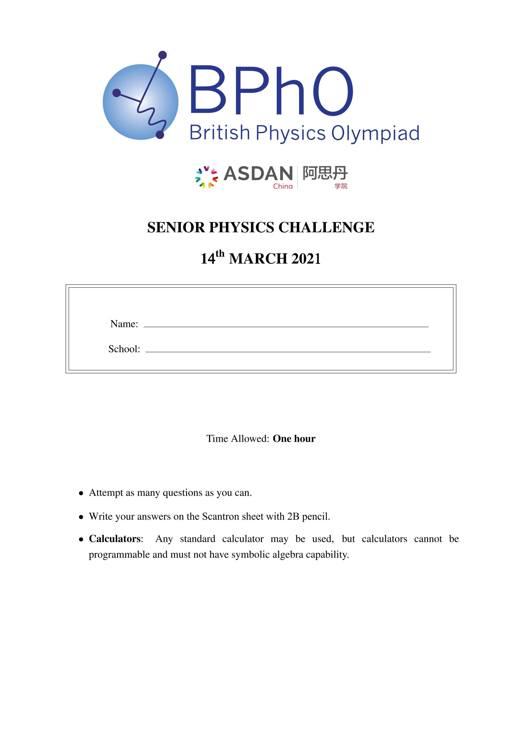 针对高二学生,难度接近BPhO Round 1,采用线上线下双轨考核模式。金银铜奖获得者均能进入BPhO首批报名池。
