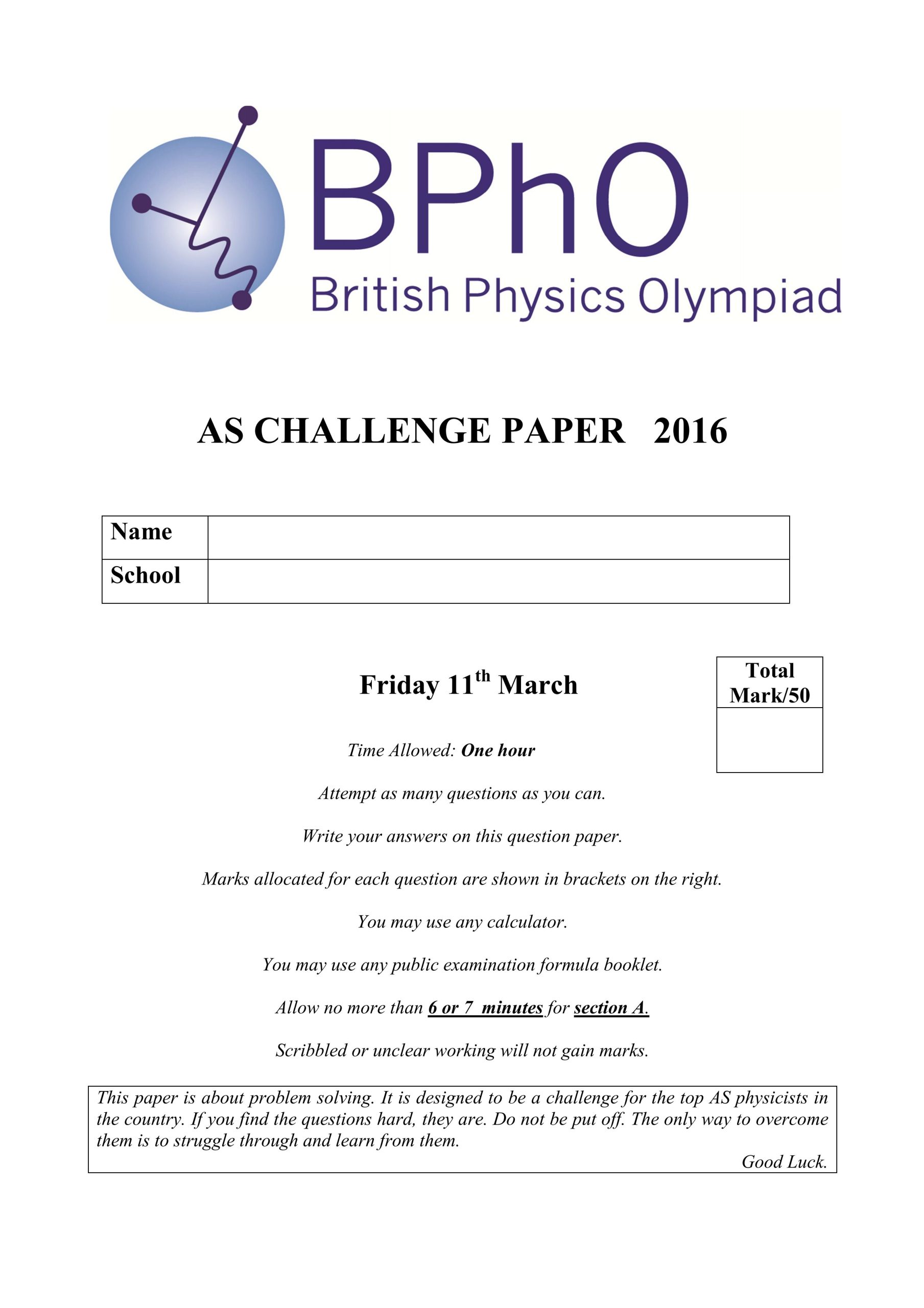 SPC(英国物理思维挑战活动・高级):